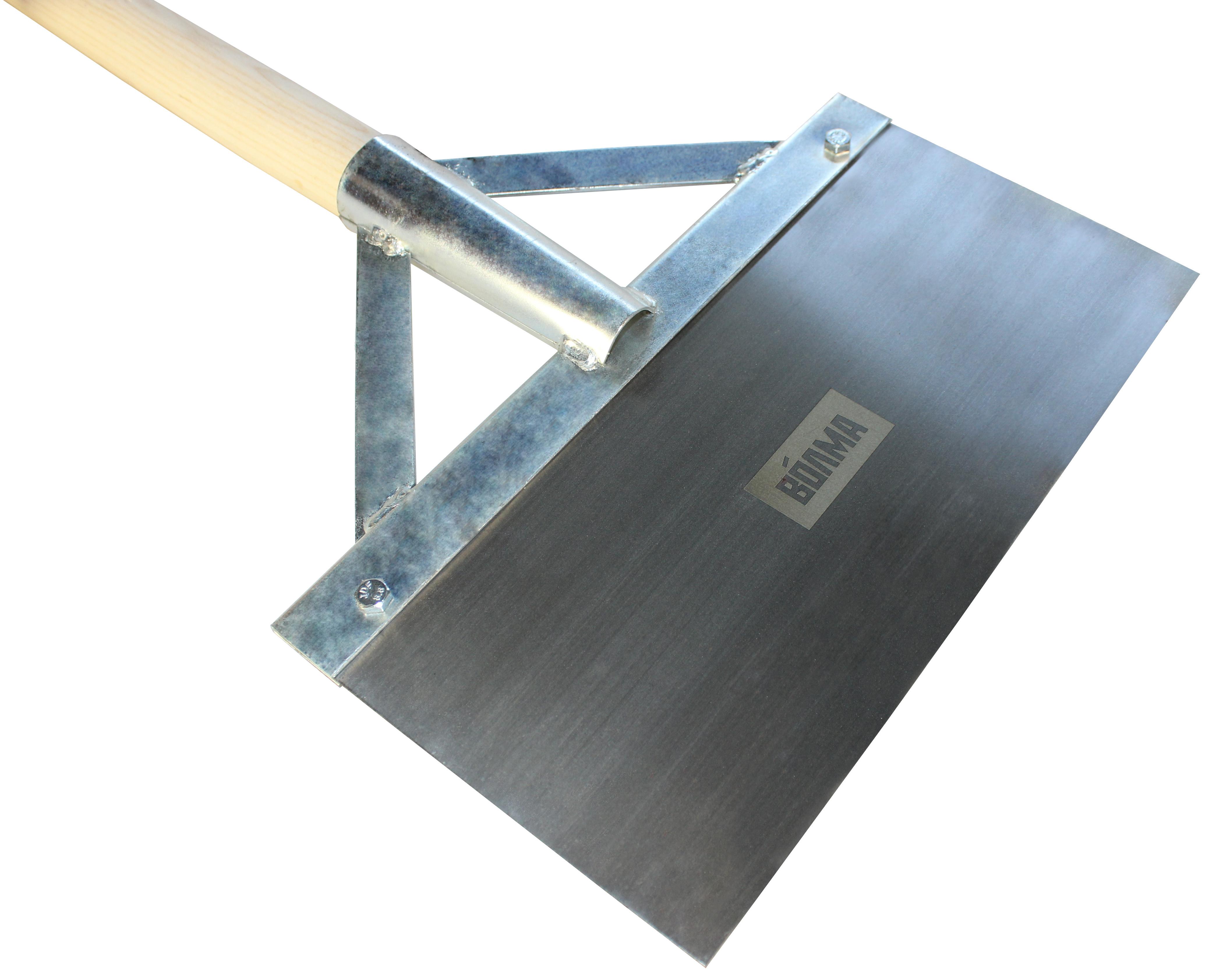 Предназначен для стесывания наплывов бетона, излишков кладочного раствора, а также для уборки строительного мусора. Полотно 300*160*1,5 мм, длина деревянного стержня 1,4 м. Состоит из калёной стали и деревянного стержня.